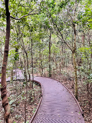 교통약자를 위한 무장애 숲길로 나무 데크가 깔려있어